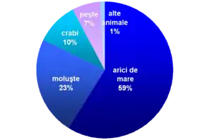 Concurentul principal în privința împărțirii hranei este foca pestriță, urmată de unele specii de păsări marine, apoi de morun și nisetru. Pescărușii deseori se alimentează cu prada prinsă de vidra de mare sau cu rămășițele aricilor de mare și crabilor. Indivizii bolnavi sau bătrâni deseori ies pe țărm, de aceea cadavrele vidrelor de mare sunt cel mai des găsite pe uscat. Cu hoiturile lor se hrănesc vulpile polare și urșii.[8]
