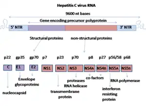 Virusul hepatitei C (VHC)[5] este un virus ARN mic (55-65 nm în dimensiune), monocatenar, anvelopat, cu polaritate pozitivă din familia Flaviviridae. Virusul hepatitei C este cauza hepatitei C și a unor forme de cancer precum cancerul de ficat (carcinom hepatocelular, abreviat HCC) și limfoame la om.[6][7]