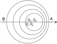Undele sonore nu mai sunt concentrice, dar se aglomerează în sensul propagării sursei de sunet. În acest caz, pentru un observator A, aflat în fața mobilului, frecvența sunetului pare mai ridicată (efectul Doppler), lucru invers în cazul unui observator B aflat în spatele mobilului.