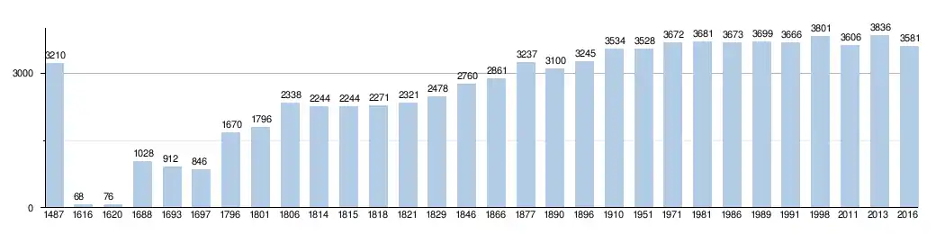 Din 1487 până în 1697 se constată o scădere semnificativă a populației din Vlamertinge. Cea mai plauzibila explicație ar fi fost Războiul de Optzeci de Ani din Olanda. În timpul Primul Război Mondial vedem că populația este din nou recurentă. Acest lucru se datorează faptului că Ypres din apropiere, oraș aflat în prima linie a frontului, a fost puternic bombardat și Vlamertinge a suferit, de asemenea, mult din cauza bombardamentelor.