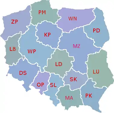 | LB | F | Lubusz | Gorzów Wielkopolski¹ Zielona Góra² |