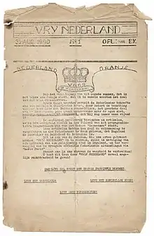 Independent de Vrij Nederland din Amsterdam a apărut la Londra în timpul războiului revista săptămânală Vrij Nederland. În 1940 a fost fondat Comitetul pentru Eliberarea Țărilor de Jos, care a publicat ziarul Mededelingen van het comité voor Vrij Nederland. Fondatorii săi erau Anne Anton Bosschart, Rudolf Pieter s'Jacob și Cornelis van der Vegte. Ei au fost arestați în decembrie 1940 și executați prin împușcare în 29 septembrie 1941.