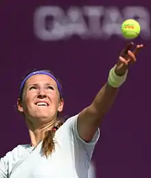 Victoria Azarenka servind la Qatar Ladies Open 2012