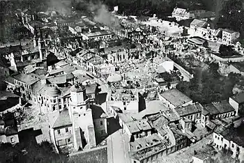Centrul oraului Wieluń după cumplitul bombardament al aviaţiei germane din 1 septembrie 1939