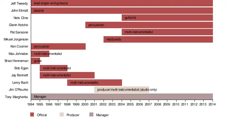 - Jeff Tweedy - lead vocal, chitară ritmică, acustică și chitară bas, armonică (1994–prezent)
