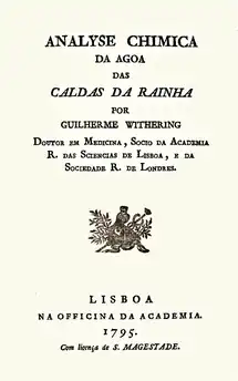 - * A chemical analysis of waters at Caldas extract din Actas da Academica real das Sciencias Editura Academiei al Royal Society, Lisabona 1793