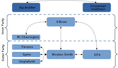Winston întâlnește o femeie tânără și misterioasă pe nume Julia, ce este un membru al Partidului Exterior, iar cei doi devin amanți. Winston ajunge să se cunoască și cu O' Brien, membru al Partidului Interior pe care Winston crede că este, în secret, un membru al Frăției, o organizație de rezistență ce are ca scop răsturnarea Partidului conducător. Crezând că au scopuri comune, Winston și Julia se alătură lui O' Brien.