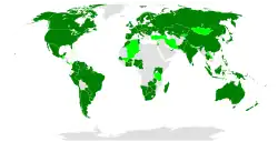 Textul tăiat indică suspendarea calități de membru în așteptarea recunoașterii de către statul. (*) indică un membru asociat.