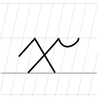 Litera Xx scrisă cu fontul „School Script Dashed”.