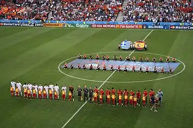 - Bulman, Erica (). „David Villa scores twice as Spain reigns over Ukraine 4–0”. USA Today. Accesat în .