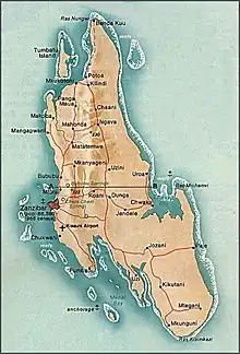 Zanzibar este un arhipelag de lângă coasta de est africană, fiind alcătuit din insula principală cu același nume (Zanzibar sau Unguja se citește Unguudșa) având suprafața de 1.658 km² și în nord insula Pemba cu 984 km².