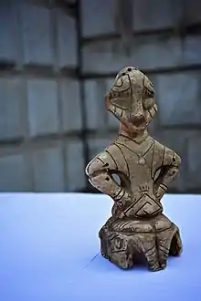 Figurina a fost descoperită de experții de la Muzeul Național al Serbiei în 1956.[3] Zeița [de] pe tron a fost furată la sfârșitul anului 1998 de Galeria Academiei Sârbe de Științe și Arte pentru expoziția sa intitulată Arheološko blago Kosova i Metohije - od neolita do ranog Srednjeg veka (Tezaurul arheologic din Kosovo și Metohia - din perioada neolitică până în Evul Mediu). După războiul din Kosovo, figurina a fost păstrată la Belgrad. În 2002, președintele de atunci al Centrului de coordonare pentru Kosovo și Metohia, Nebojša Čović(d), a returnat figurina la Priština ca „un semn de bunăvoință față de albanezii din Kosovo”.[3] Acest lucru s-a întâmplat după insistențele supraveghetorului ONU de atunci, Michael Steiner.[4]