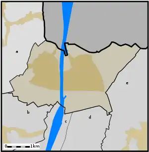 Suprafața totală a comunei este de 13,71 km². Localitățile limitrofe sunt: