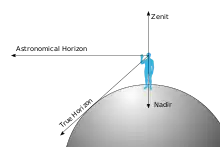 Zenit se numește punctul de intersecție al verticalei locului cu sfera cerească, situat deasupra observatorului (punctul cel mai înalt de pe bolta cerească). Punctul diametral opus zenitului este nadirul.