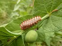 Omizile de Z. polyxena sunt de până la 35 de milimetri lungime. Acestea sunt inițial negre, apoi devin de culoare gălbuie, cu șase rânduri de țepi cărnoși portocalii și negri peste corp.