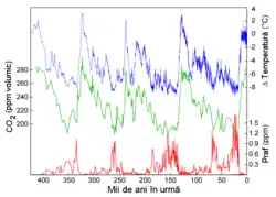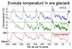 Studiului glaciațiunilor a relevat perfecta corelație între temperatură, întinderea ghețurilor și concentrația de dioxid de carbon în atmosferă.