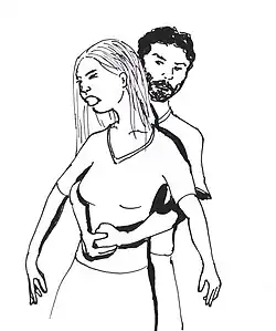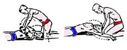 - se imobilizează brațele victimei prin prinderea lor de coate, procedeu care va permite salvatorului solitar de a câștiga timp când trece la masajul cardiac.