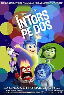 - ↑ „Află ce spun vocile din mintea ta în cel mai nou film Disney/Pixar, „Întors pe dos"”. CinemaRx.ro. Arhivat din original la . Accesat în .