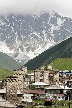 - 1 2 3 4 5 6 7 Comunitatea Ușguli (în georgiană უშგული, transliterat: ušguli) este formată dintr-un grup de sate din regiunea georgiană Svaneția Superioară: Ciajași, Lamdjuriși, Murkmeli, Jibiani și Civibiani (în georgiană ჩაჟაში, ლამჯურიში, მურყმელი, ჟიბიანი, ჩვიბიანი), înființată cel puțin încă din Evul Mediu timpuriu și reprezentând așezarea din Europa situată la cea mai mare altitudine (2.100 m). În aceste sate există clădiri construite în secolele al IX-lea și al X-lea, dar zona a rămas izolată de restul Georgiei pentru o lungă perioadă de timp, abia în secolul XX fiind construite drumuri către această comunitate care număra 228 de persoane în anul 2014. În anul 1996, comunitatea Ușguli a fost inclusă în Lista Patrimoniului Mondial UNESCO[8]