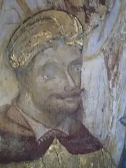 ![]() Ștefan cel Mare, frescă contemporană din timpul vieții domnitorului, anul 1488, Mănăstirea Voroneț | |