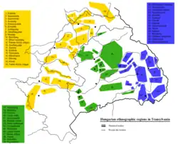 Regiunile etnografice maghiare din Transilvania. La poziția 17 de regăsește regiunea etnografică Țara Călatei