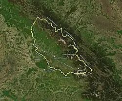 Masivele muntoase care înconjoară zona depășesc înălțimea de 2.000 m - Pietrosul Rodnei 2.303 m, Hovârla 2.061 m în masivul Muntele Negru (Černahora) - și la această latitudine, de la 1.500 m în sus, își fac apariția pășunile alpine. Munții, care ocupă mai mult de jumătate din suprafața regiunii, sunt acoperiți de păduri de stejar, fag și molid. Lemnul care se găsea din abundență și-a lăsat amprenta aproape peste tot, de la arhitectura tradițională a caselor și bisericilor, până la vestitele porți și unelte de gospodărie.