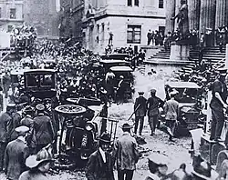 1920: La New York are loc Atentatul cu bombă de pe Wall Street când în fața băncii JP Morgan Inc. explodează un vagon tras de cai în care erau 45 kg de dinamită, împreună cu 230 kg de fragmente din fontă declanșate de un detonator temporizat,[1] provocând împrăștierea bucăților de metal în toate direcțiile.[2] Au fost 38 de decese și aproximativ 400 de răniți.