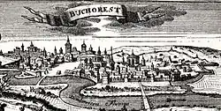 1459: Prima mențiune documentară a cetății Bucureștilor, într-un hrisov al lui Vlad Țepeș redactat în slavonă, limba oficială de cancelarie a Țării Românești.[1]