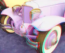 - o tehnică simplă cu numai 2 culori (roșu și albastru), care necesită ochelari simpli, albastru/roșu;