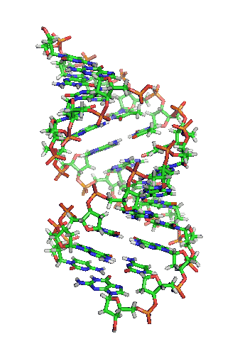 - Acidul dezoxiribonucleic are o structură de elice dublă. „Scara” este alcătuită din două lanțuri organice elastice ce sunt conectate prin „treptele” realizate de legăturile de hidrogen.
