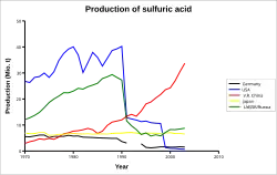 - ↑ „Schwefelsäureproduktion 1970–2003 der United Nations Statistics Division”. Arhivat din original la . Accesat în .