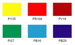 Multe culori sunt cunoscute sub nume perpetuate prin notații comerciale, cum ar fi „roșu indian”, „verde smarald” sau „umbră arsă”, nume neoficiale. Începând din 1990 industria coloranților a început să dea nume sistematice, bazate pe componentul principal, cum ar fi „albastru cobalt” și „roșu cadmiu”.[35] În 1925 a fost publicat pentru prima dată Indexul Internațional al Culorilor, realizat prin colaborarea dintre Society of Dyers and Colourists din Regatul Unit și American Association of Textile Chemists and Colorists din SUA, index care a asociat, de exemplu culorii albastru cobalt codul PB28, respectiv roșului cadmiu codul PR108, ceea ce a eliminat ambiguitățile, de exemplu în cazul culorii sap green (un verde ca frunza), care avea compoziții diferite.