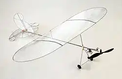 Un astfel de micromodel era propulsat de un motor de cauciuc. Împânzirea era făcută cu un microfilm subțire transparent. Microfilmul era o soluție compusă din 1% camfor, 3% ulei de ricin, 48% emaită și 48% tiner.