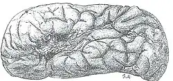 - "piciorul" (pars opercularis) și "capul" (pars triangularis) celei de a treia circonvoluțiuni frontale = aria lui Broca, a cărei leziune afectează producția vorbirii