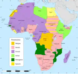 „Împărțirea Africii” a fost cucerirea și colonizarea majorității Africii de către șapte puteri europene occidentale, impulsionată de a doua Revoluție Industrială în timpul erei „Imperialismului Nou” (1833–1914). În 1870, 10% din continent era formal sub control european. Până în 1914, acest procent a crescut la aproape 90%, cu doar Liberia, Etiopia și părți din actuala Libie păstrându-și suveranitatea deplină.[83]