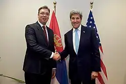 - ↑ „Aleksandar Vucic: Kosovo Serbs 'should accept deal'”. BBC News. . Accesat în .