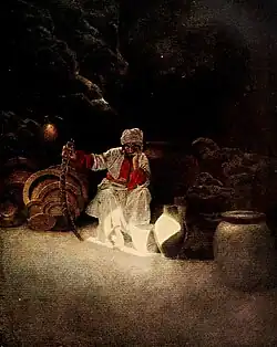 Pentru a se răzbuna, șeful revine după un timp ca neguțător, se împrietenește cu fiul lui Ali-Baba și într-o zi este invitat de familie la masă. Este însă recunoscut de Morgiana, care apoi execută un dans cu un cuțit, pe care îl înfige în inima șefului hoților când acesta nu era atent. Ali-Baba întâi se supără pe Morgiana, dar când află că hoțul încercase să-l omoare, îi redă Morgianei libertatea și o mărită cu fiul său.