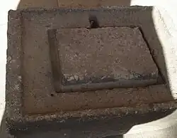 Altar de piatră pentru sacrificii. Se observă canalul de colectare şi orificiul de evacuare a sângelui. (Lapidariul Catedralei Reîntregirii Neamului din Alba Iulia)
