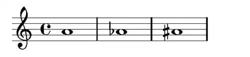 - dublu-bemolul (♭♭) coboară intonația sunetului cu un ton;[1]
