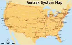 - ↑ „Amtrak Fact Sheet”. Web.archive.org. . Arhivat din originalul de la . Accesat în .