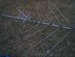- O veche antenă de televiziune de tip Yagi în banda VHF.