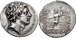 - ↑ Cercetări numismatice au arătat, că, pe monedele din vremea lui Antioh, Zeus l-a înlocuit pe Apollo, care apărea pe monedele seleucide timpurii