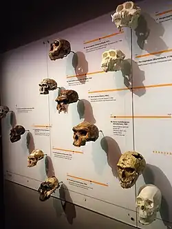 Evoluția umană este procesul evolutiv care conduce la apariția oamenilor moderni din punct de vedere anatomic. Procesul se concentrează pe istoria evolutivă a primatelor – în special pe genul Homo, și pe apariția Homo sapiens ca o specie distinctă de hominidae (sau „maimuțe antropoide”) – fără a studia istoria anterioară care a condus la primate și hominoidea (maimuțe fără coadă). Acest proces a implicat dezvoltarea treptată a însușirilor, cum ar fi poziția bipedă umană și limbajul,[2] precum și încrucișări cu alți hominizi, care indică faptul că evoluția umană nu a fost liniară.[3][4][5][6]
