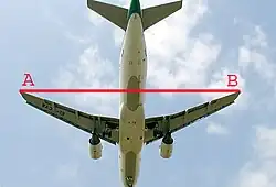 Distanța dintre punctul A și punctul B reprezintă anvergura acestui avion Airbus A320.