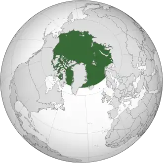 Arctica cuprinde uscat, apă, zăpadă și gheață incluzând Oceanul Arctic și porțiunile cele mai nordice ale Groenlandei (parte a Danemarcei), Islandei, Norvegiei, Suediei, Finlandei, Rusiei, Statelor Unite ale Americii (statul Alaska) și Canadei (navigând de la vest la est).