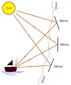 Folosirea oglinzilor parabolice incendiatoare în timpul asediului Siracuzei