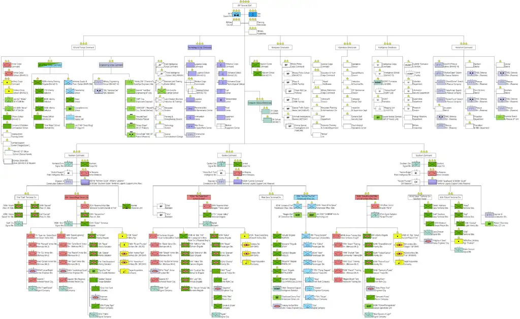 - structura, care subliniază legătura strânsă între forțele terestre, marina și aviația.