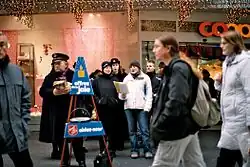 - ↑ „Salvation Army defends unpaid work placements as protesters picket headquarters”, Christiantoday.com, accesat în