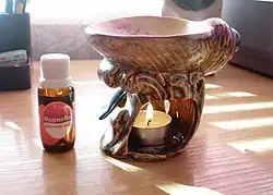 - Lămpi de aromă sau difuzoare: dispozitive electrice sau cu lumânare, ce volatilizează uleiuri esențiale, de obicei amestecate cu apă.