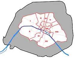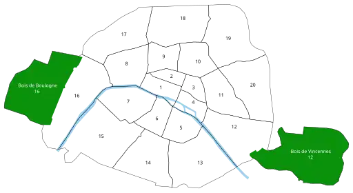 Cele douăzeci de arondismente sunt aranjate în sensul acelor de ceasornic, începând din mijlocul orașului, primul aflându-se pe malul drept (malul de nord) al Senei.